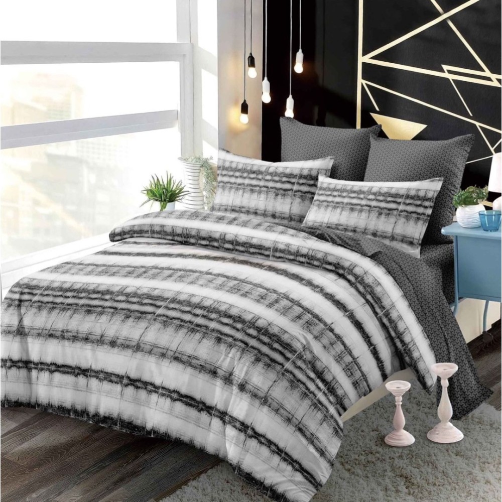 Lenjerie pat dublu, FINET, cu elastic, 6 piese, Gri, abstract, Primavara Casa, cod produs: CFE258