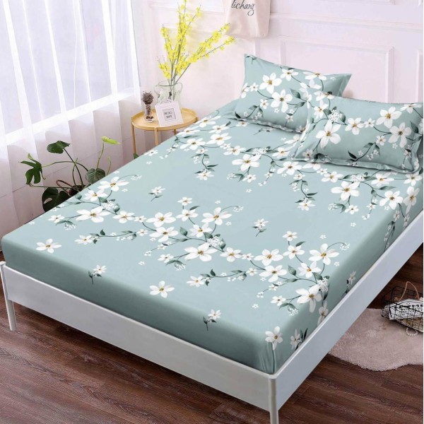 Cearsaf cu elastic, FINET, 180x200cm, 2 fete de perne 50x70cm, Bleu, flori, Johny Home Pucioasa, cod produs: SPR-G-59