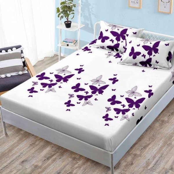 Cearsaf cu elastic, FINET, 180x200cm, 2 fete de perne 50x70cm, Mov, fluturi, Johny Home Pucioasa, cod produs: SPR-G-68
