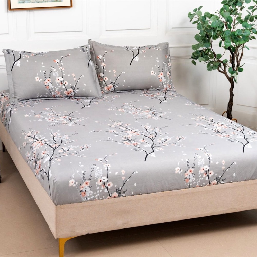 Cearsaf cu elastic, Bumbac Satinat, 160/180x200cm, 2 fete de perne 50x70cm, Gri, crengute, Alti producatori, cod produs: HSP78