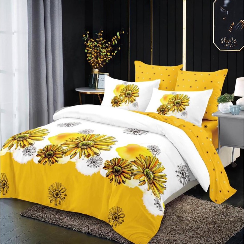 Lenjerie pat dublu, FINET, 6 piese, Galben, flori, Primavara Casa, cod produs: PRi42
