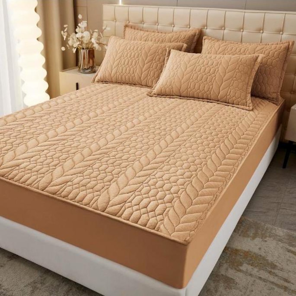 Husã matlasatã tip topper din catifea, 160x200cm + 2 fete de perna 50x70cm, cappuccino, Alti producatori, cod produs: YAT183