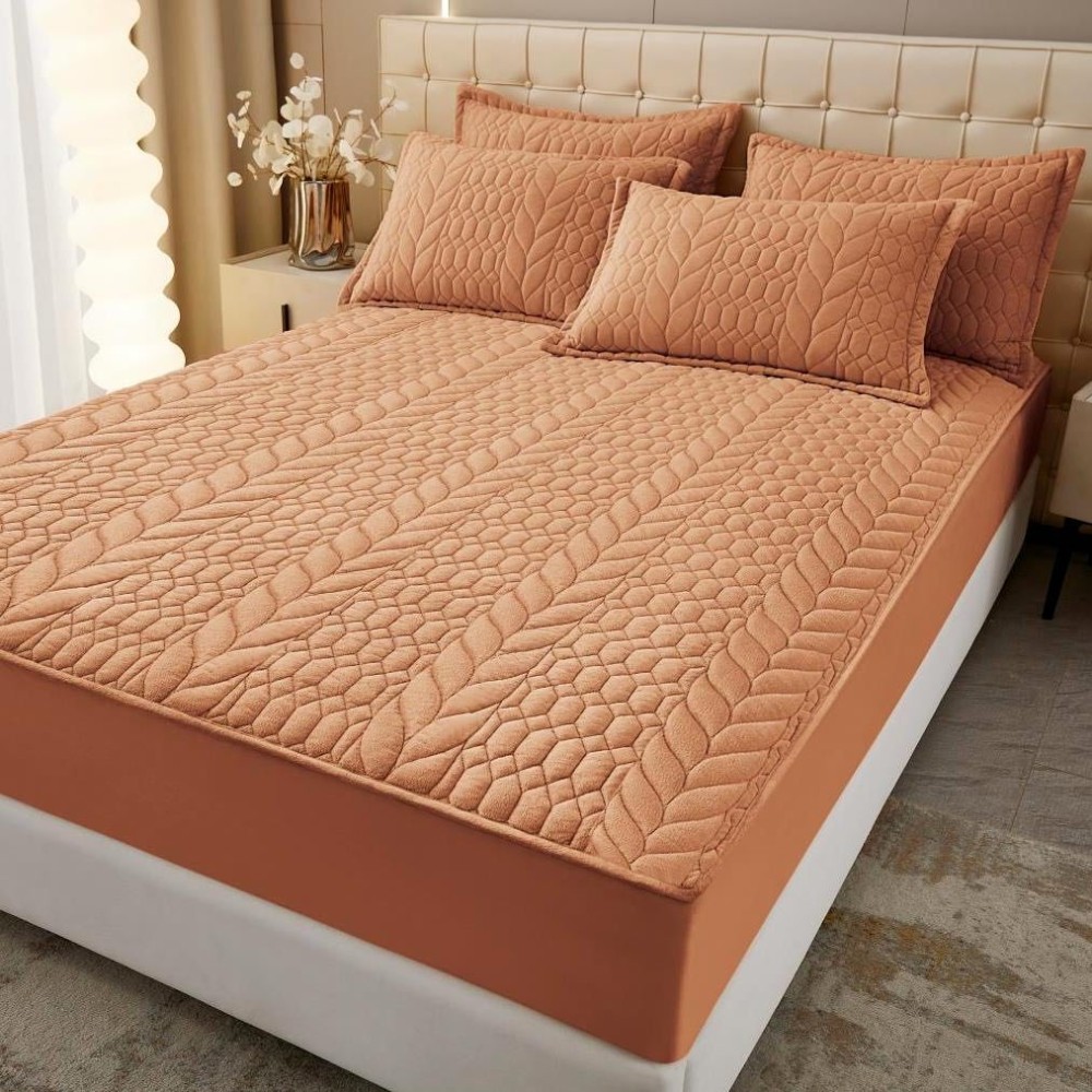 Husã matlasatã tip topper din catifea, 160x200cm + 2 fete de perna 50x70cm, maro deschis, Alti producatori, cod produs: YAT189