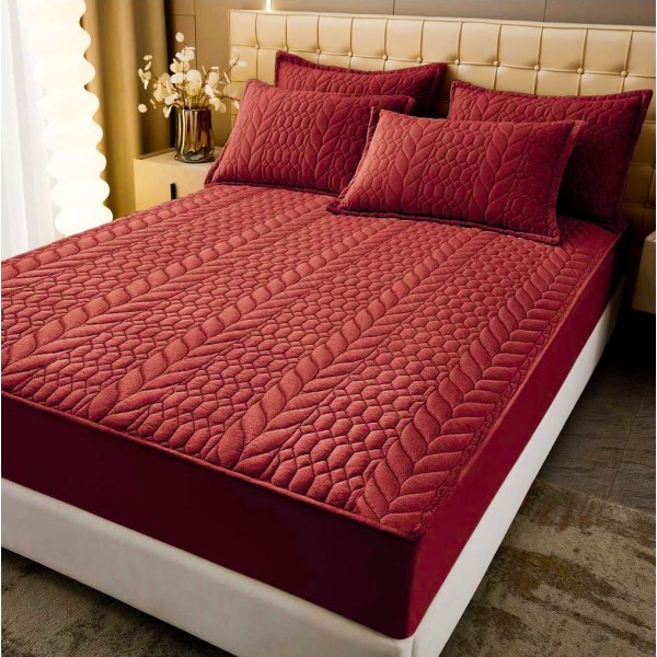 Husã matlasatã tip topper din catifea, 160x200cm + 2 fete de perna 50x70cm, grena, Alti producatori, cod produs: YAT188
