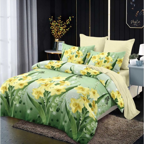Lenjerie pat dublu, FINET, cu elastic, 6 piese, Verde, flori, Primavara Casa, cod produs: CFE273