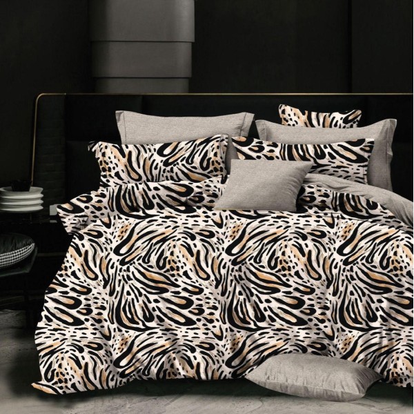 Lenjerie pat dublu, FINET, 6 piese, Maro, animal print, Johny Home Pucioasa, cod produs: DKF2