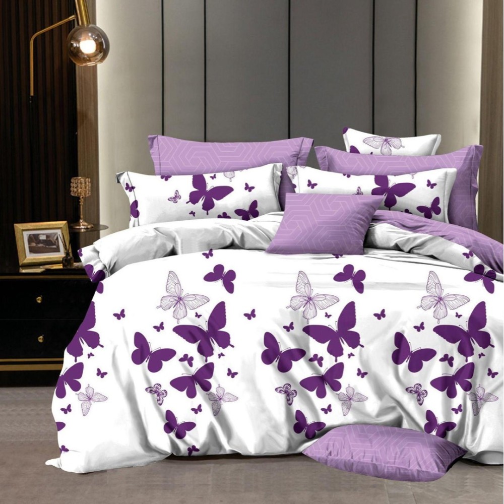 Lenjerie pat dublu, FINET, 6 piese, Mov, fluturi, Johny Home Pucioasa, cod produs: DKF3