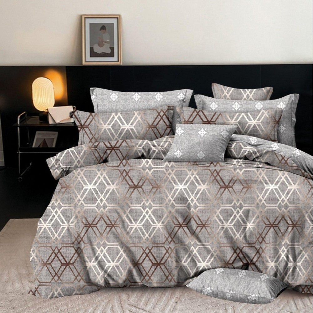 Lenjerie pat dublu, FINET, 6 piese, Gri, forme geometrice, Johny Home Pucioasa, cod produs: DKF4