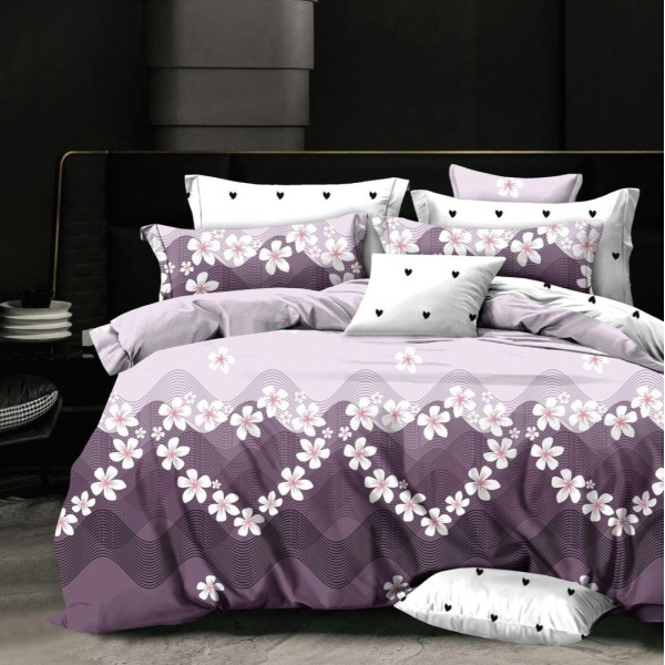 Lenjerie pat dublu, FINET, 6 piese, Mov, flori, Johny Home Pucioasa, cod produs: DKF10
