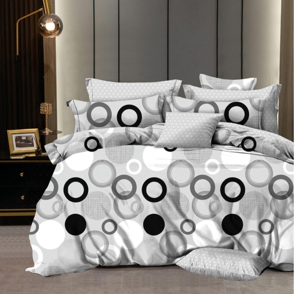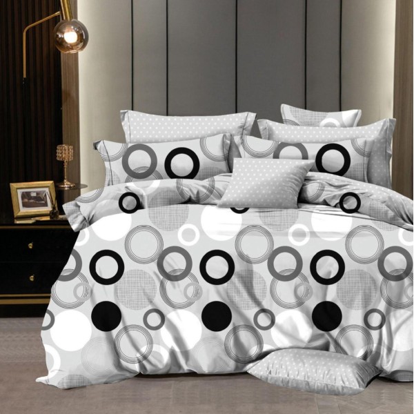 Lenjerie pat dublu, FINET, 6 piese, Gri, cercuri, Johny Home Pucioasa, cod produs: DKF20