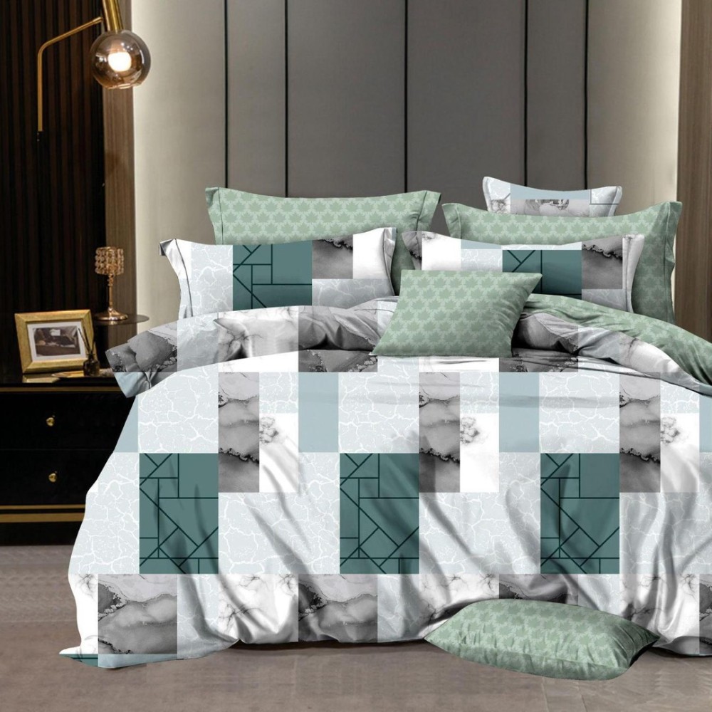 Lenjerie pat dublu, FINET, 6 piese, Verde, abstract, Johny Home Pucioasa, cod produs: DKF22