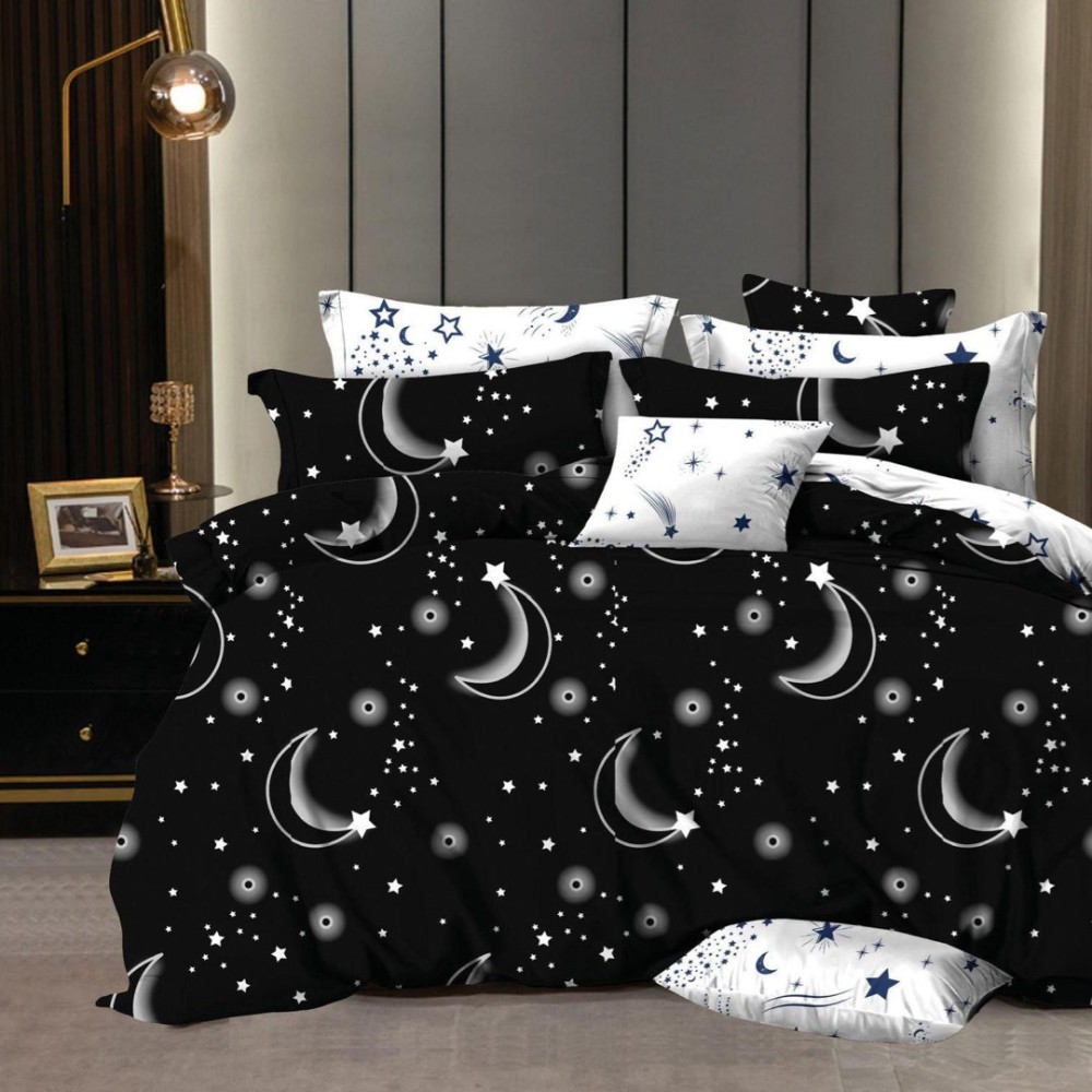 Lenjerie pat dublu, FINET, 6 piese, Negru, stelute, Johny Home Pucioasa, cod produs: DKF26