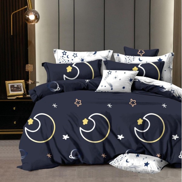 Lenjerie pat dublu, FINET, 6 piese, Bleumarin, stelute, Johny Home Pucioasa, cod produs: DKF27