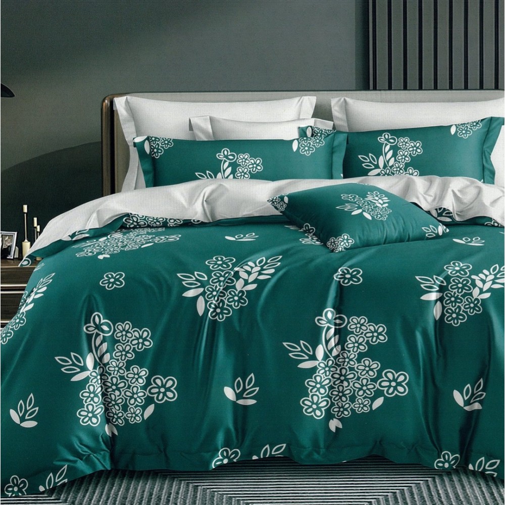 Lenjerie pat dublu, FINET, 6 piese, Turquoise, flori, Johny Home Pucioasa, cod produs: DKF41