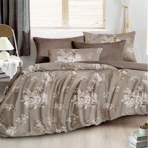 Lenjerie pat dublu, FINET, 6 piese, Bej, flori, Johny Home Pucioasa, cod produs: DKF42