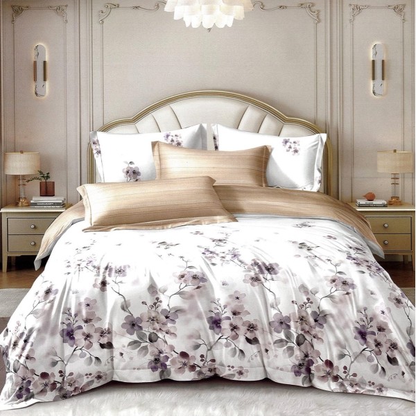 Lenjerie pat dublu, FINET, 6 piese, Gri, flori, Johny Home Pucioasa, cod produs: DKF59