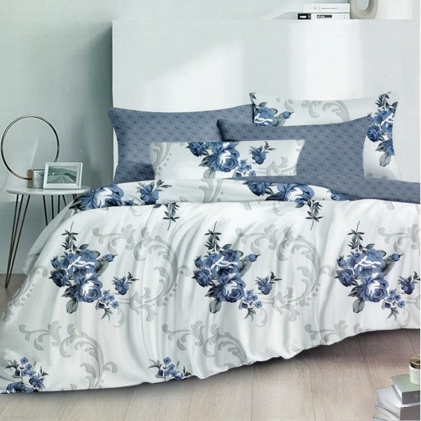 Lenjerie pat dublu, FINET, 6 piese, Albastru, flori, Johny Home Pucioasa, cod produs: DKF65