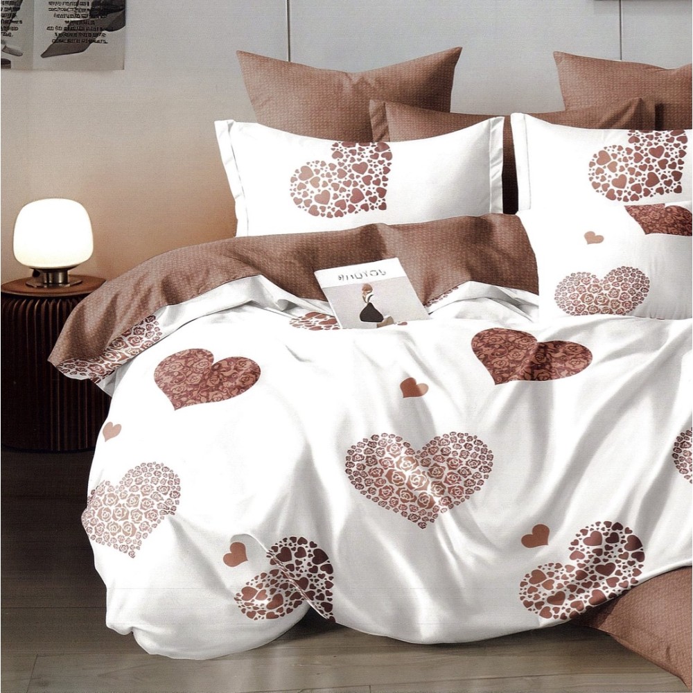 Lenjerie pat dublu, FINET, 6 piese, Maro, inimioare, Johny Home Pucioasa, cod produs: DKF82