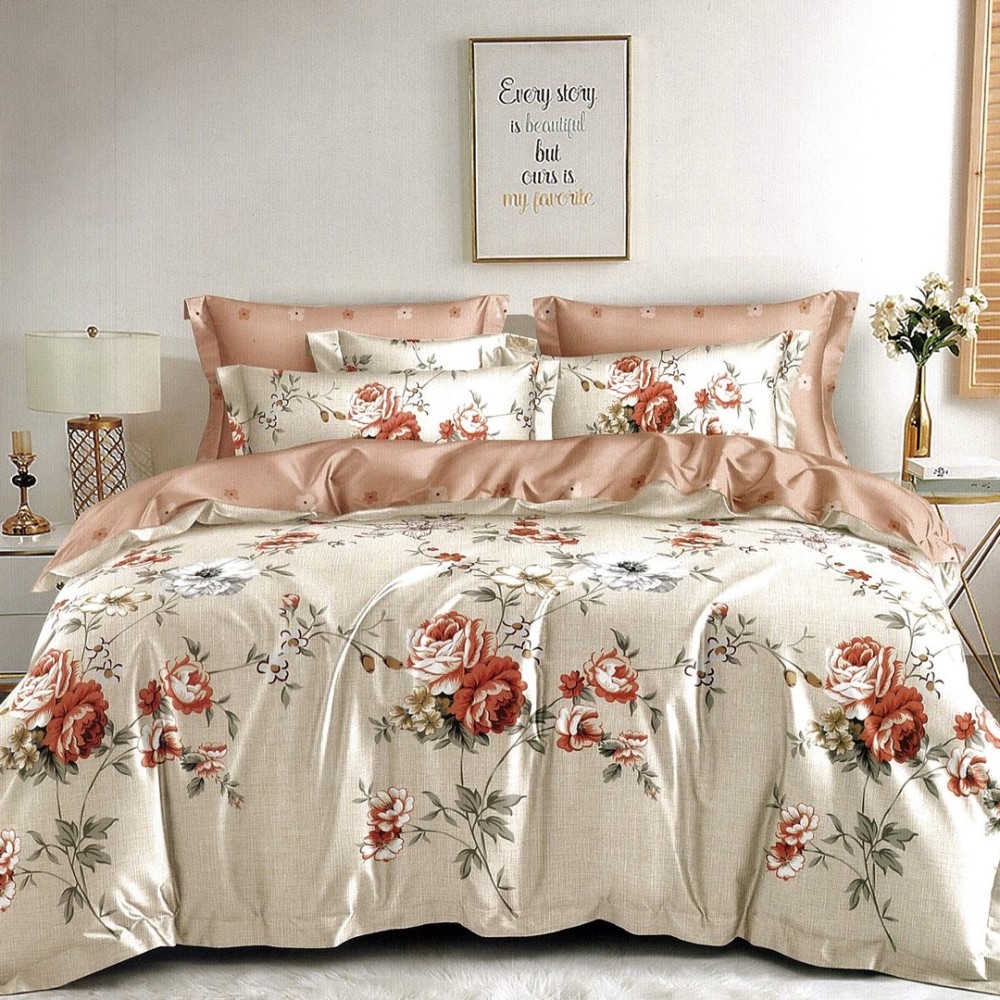 Lenjerie pat dublu, FINET, 6 piese, Bej, flori, Johny Home Pucioasa, cod produs: DKF90