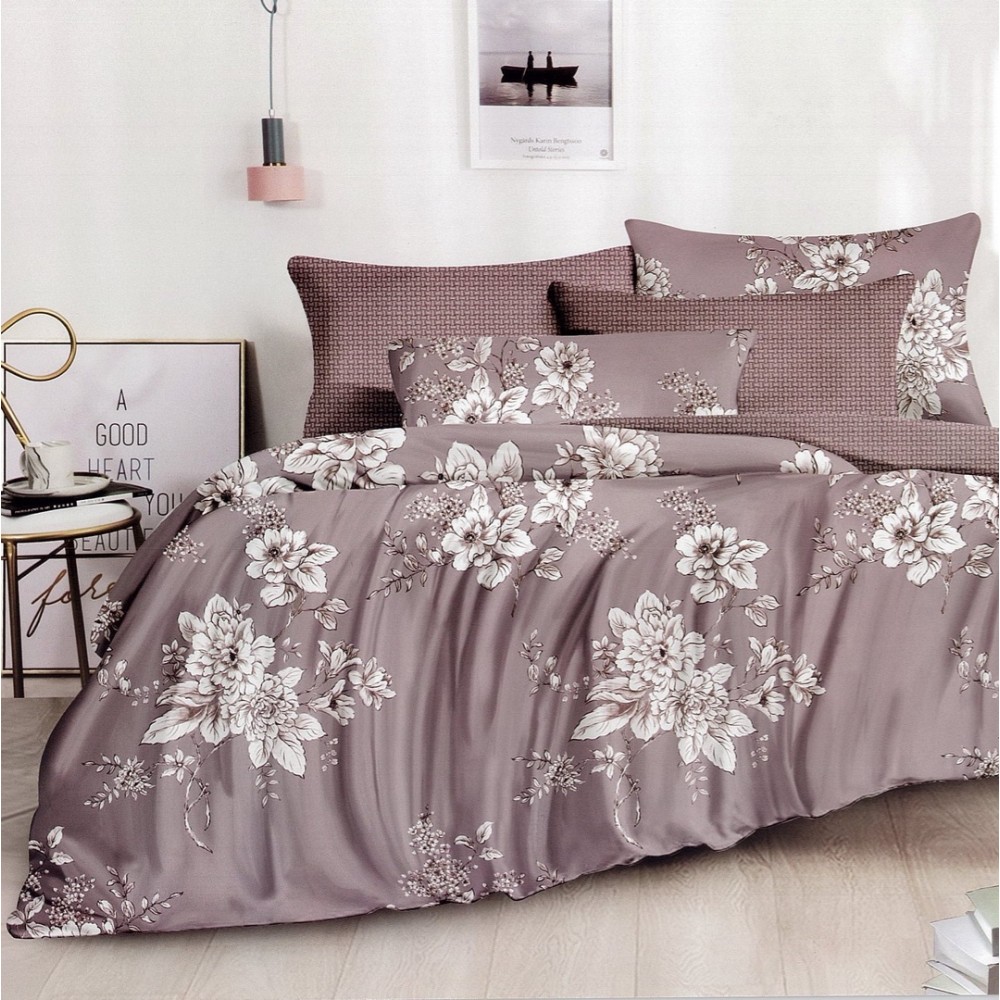 Lenjerie pat dublu, FINET, 6 piese, Gri, flori, Johny Home Pucioasa, cod produs: DKF94