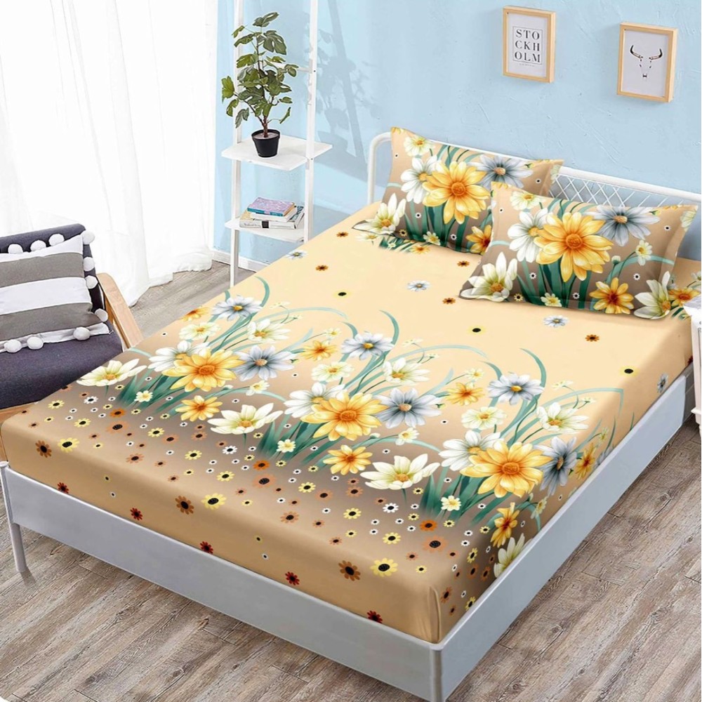 Cearsaf cu elastic, FINET, 160x200cm, 2 fete de perne 50x70cm, Bej, flori, Primavara Casa, cod produs: PRH59