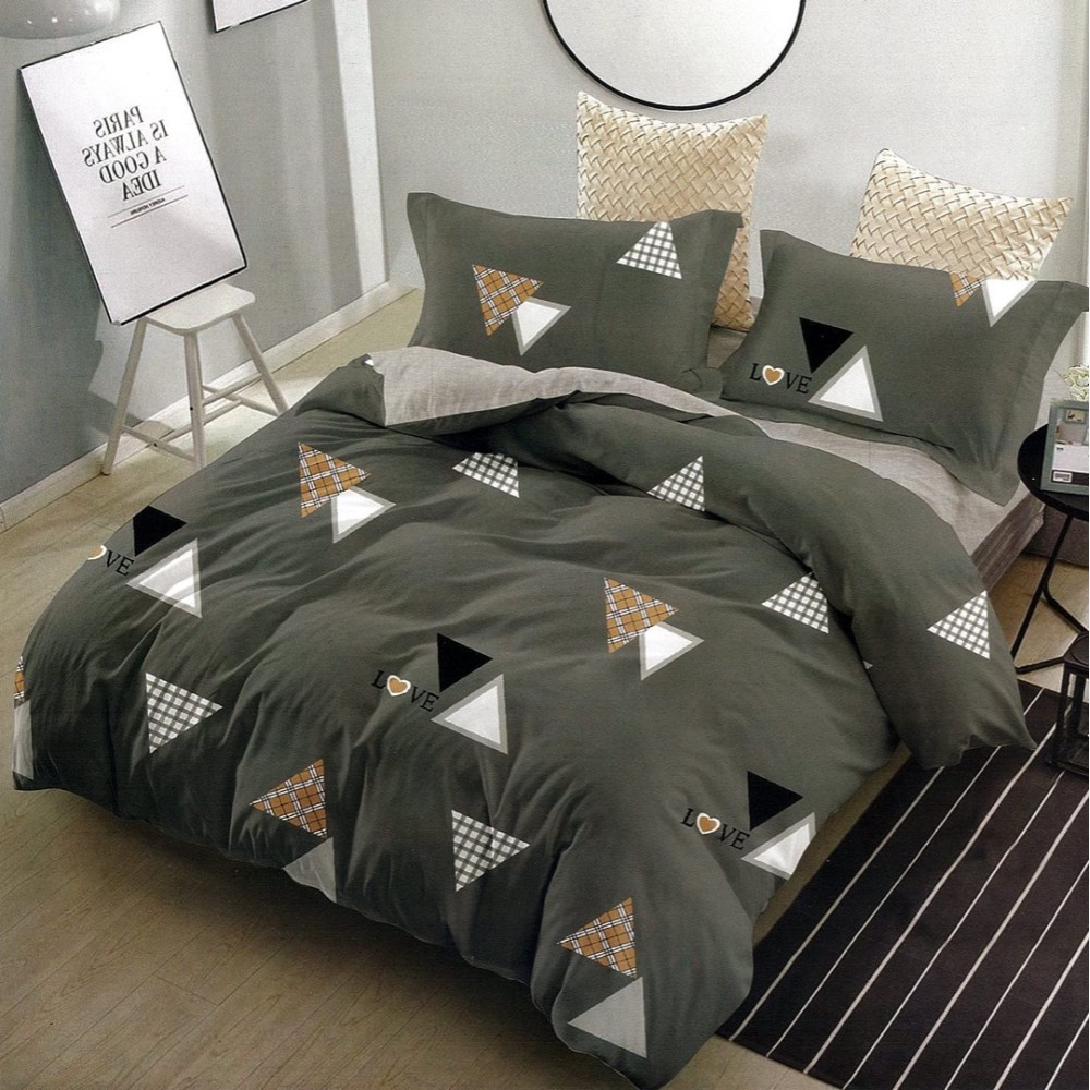 Lenjerie pat dublu, FINET, 6 piese, Gri, forme geometrice, Johny Home Pucioasa, cod produs: DKF103