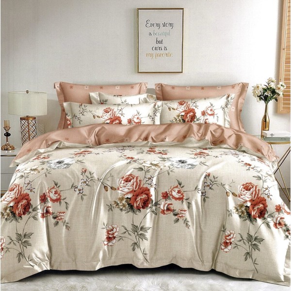 Lenjerie pat dublu, FINET, 6 piese, Bej, flori, Johny Home Pucioasa, cod produs: DKF112