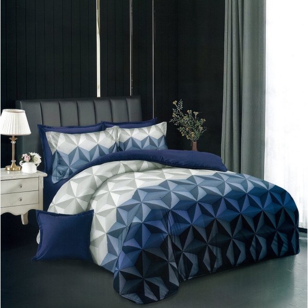 Lenjerie pat dublu, FINET, 6 piese, cu ELASTIC, Albastru, forme geometrice, Johny Home Pucioasa, cod produs: DKT7
