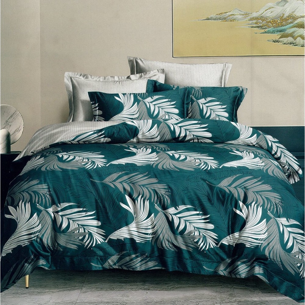 Lenjerie pat dublu, FINET, 6 piese, cu ELASTIC, Verde, pene, Johny Home Pucioasa, cod produs: DKT23
