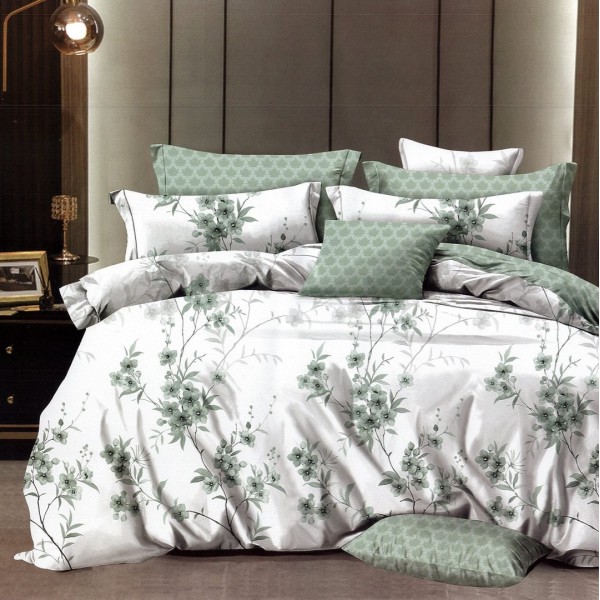 Lenjerie pat dublu, FINET, 6 piese, cu ELASTIC, Verde, flori, Johny Home Pucioasa, cod produs: DKT26