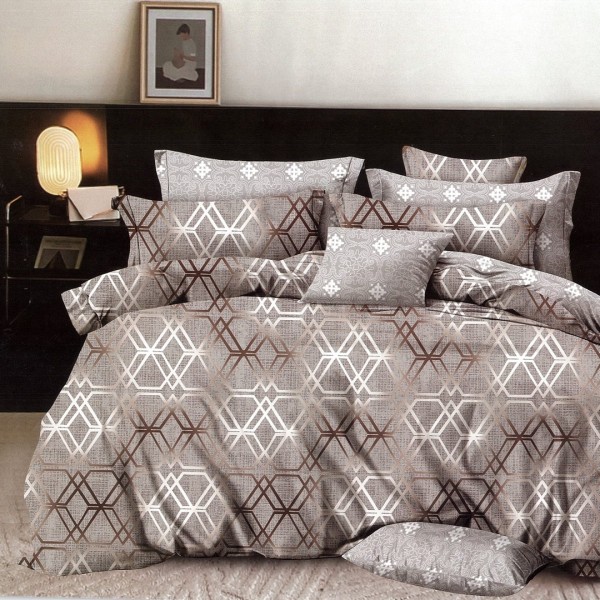 Lenjerie pat dublu, FINET, 6 piese, cu ELASTIC, Gri, forme geometrice, Johny Home Pucioasa, cod produs: DKT30