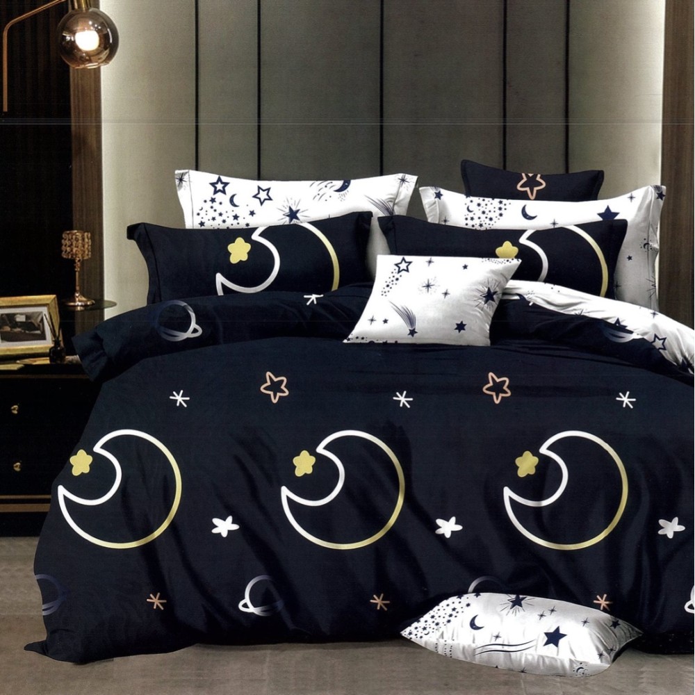 Lenjerie pat dublu, FINET, 6 piese, cu ELASTIC, Bleumarin, stelute, Johny Home Pucioasa, cod produs: DKT51
