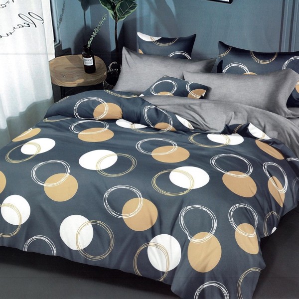 Lenjerie pat dublu, FINET, 6 piese, Gri, cercuri, Johny Home Pucioasa, cod produs: DKF118