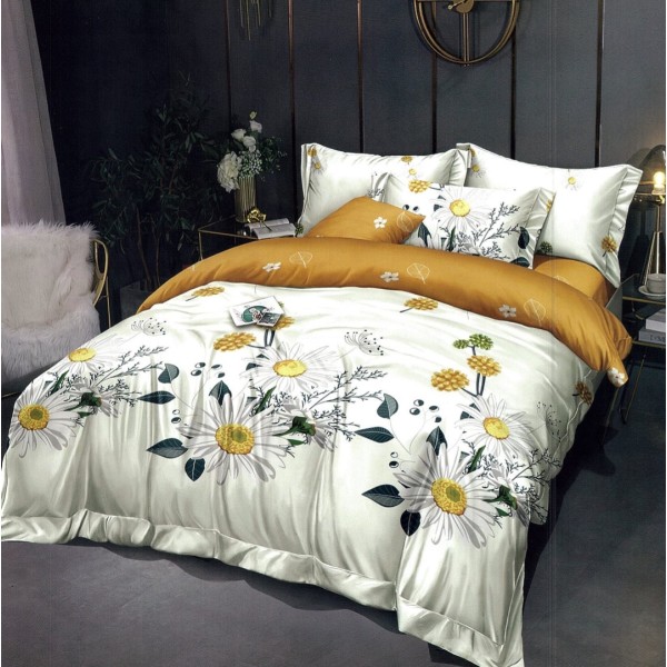 Lenjerie pat dublu, FINET, 6 piese, Galben, flori, Johny Home Pucioasa, cod produs: DKF126