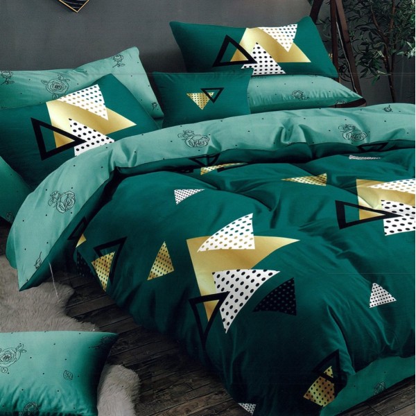 Lenjerie pat dublu, FINET, 6 piese, Verde, forme geometrice, Johny Home Pucioasa, cod produs: DKF127