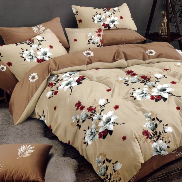 Lenjerie pat dublu, FINET, 6 piese, Bej, flori, Johny Home Pucioasa, cod produs: DKF128