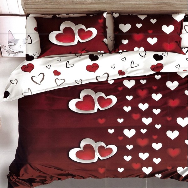 Lenjerie pat dublu, FINET, 6 piese, Rosu, inimioare, Johny Home Pucioasa, cod produs: DKF135