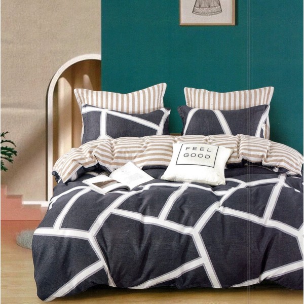 Lenjerie pat dublu, FINET, 6 piese, Gri, forme geometrice, Johny Home Pucioasa, cod produs: DKF136