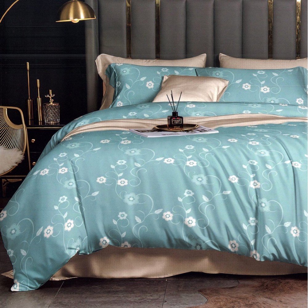 Lenjerie pat dublu, FINET, 6 piese, Bleu, flori, Johny Home Pucioasa, cod produs: DKF147