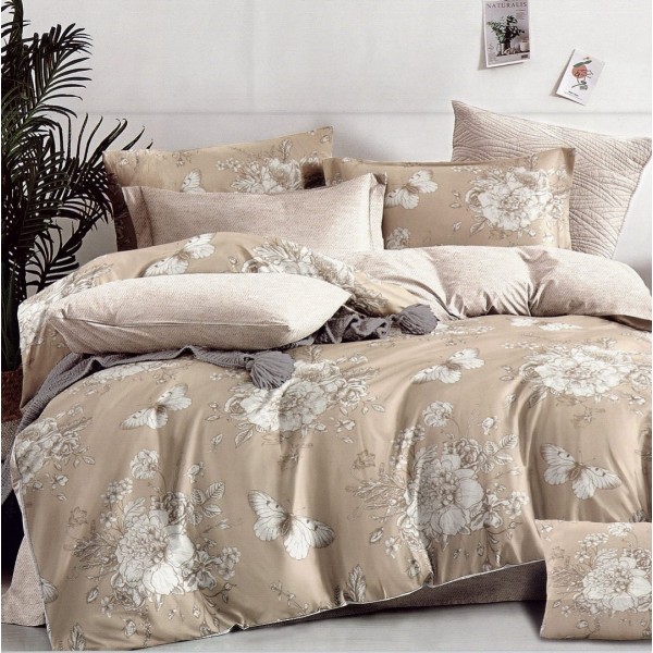 Lenjerie pat dublu, FINET, 6 piese, Bej, flori, fluturi, Johny Home Pucioasa, cod produs: DKF156