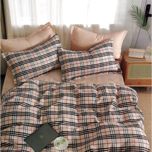 Lenjerie pat dublu, FINET, 6 piese, Bej, carouri, Johny Home Pucioasa, cod produs: DKF159