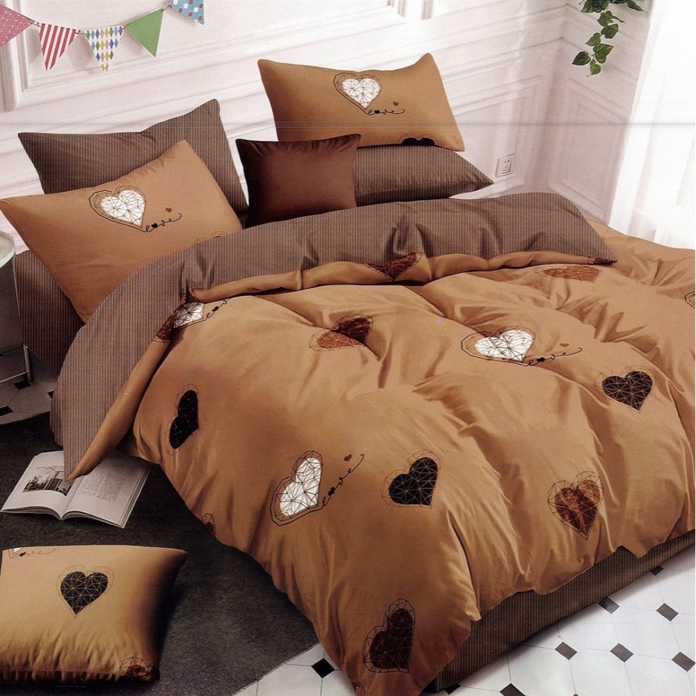 Lenjerie pat dublu, FINET, 6 piese, Maro, inimioare, Johny Home Pucioasa, cod produs: DKF166