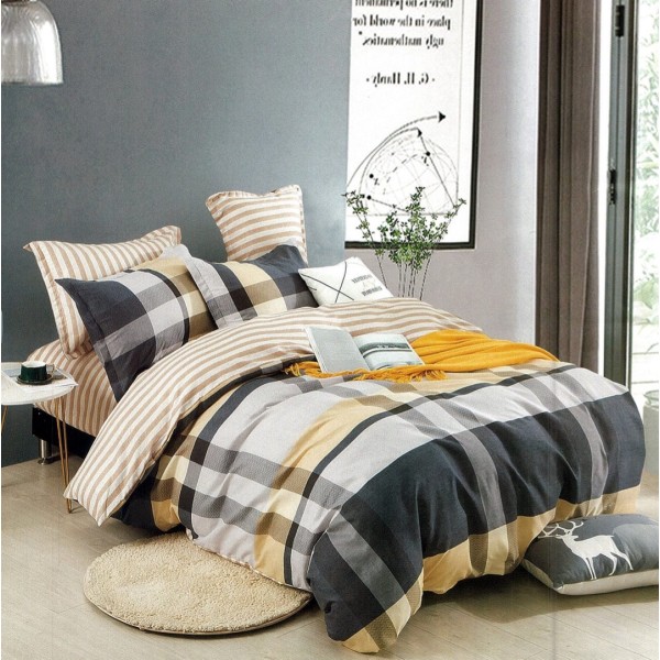 Lenjerie pat dublu, FINET, 6 piese, Bej, dungi, Johny Home Pucioasa, cod produs: DKF173