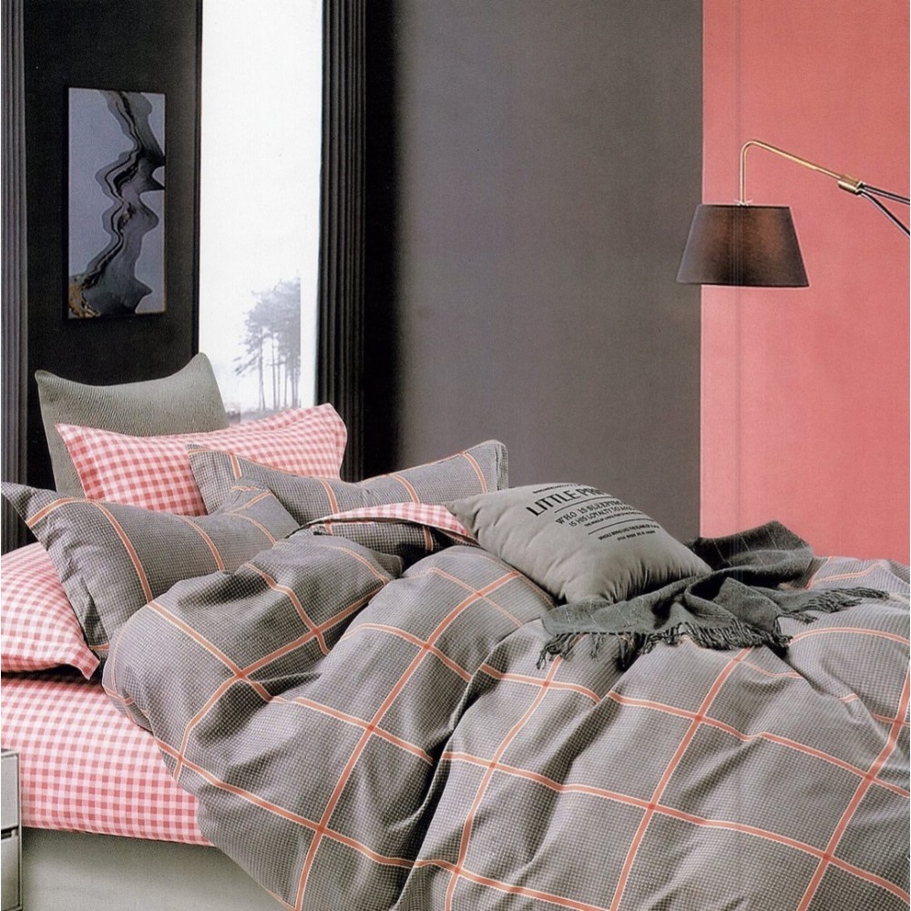 Lenjerie pat dublu, FINET, 6 piese, Gri, dungi, Johny Home Pucioasa, cod produs: DKF175