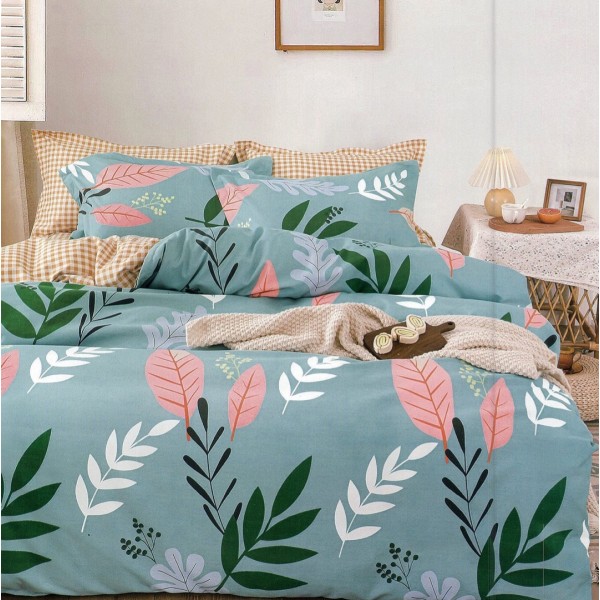 Lenjerie pat dublu, FINET, 6 piese, Bleu, frunze, Johny Home Pucioasa, cod produs: DKF178