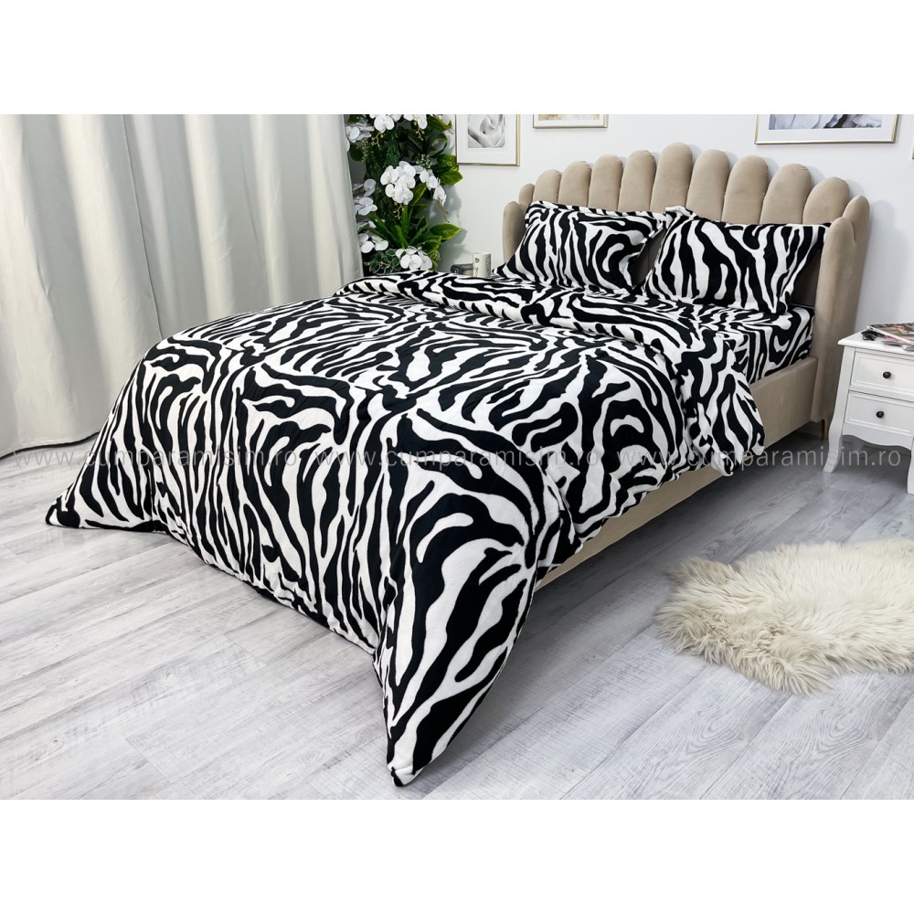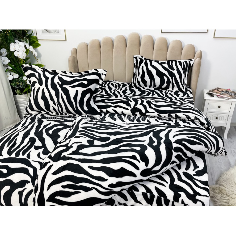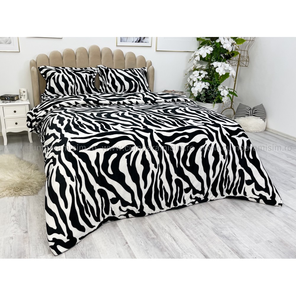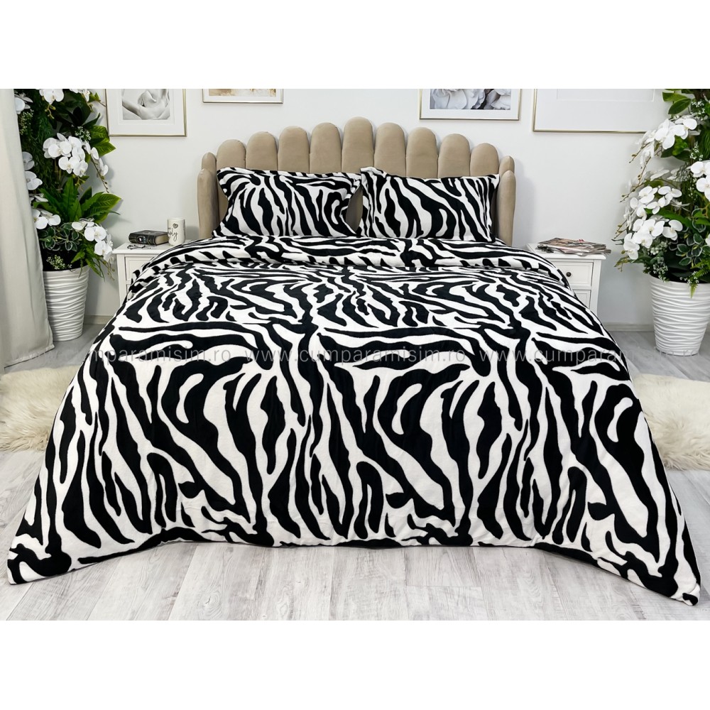 Lenjerie pat dublu, Super Pufoasa COCOLINO, 4 piese, Alb-Negru, Zebra, CumparaMisim, cod produs: EST-CO2