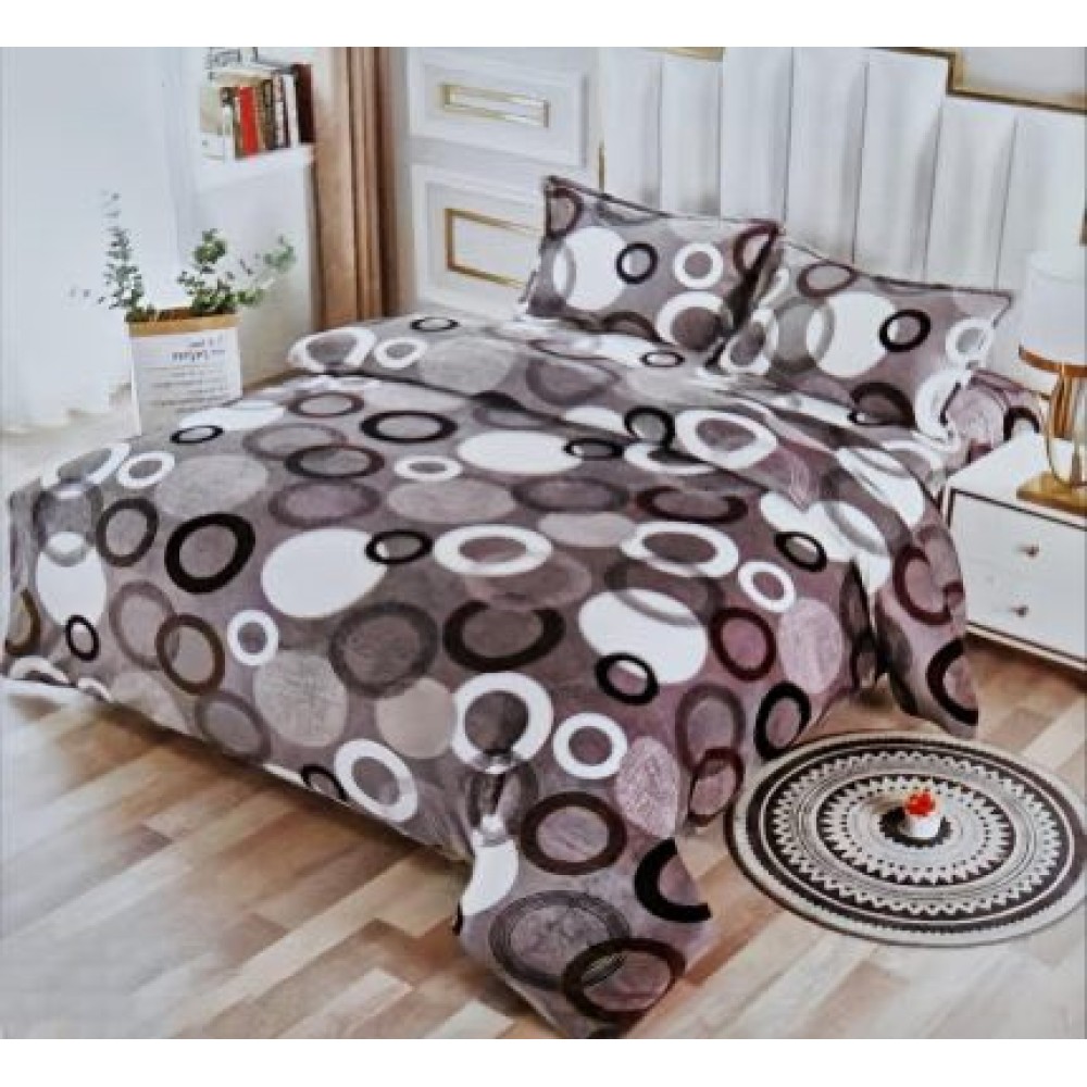 Lenjerie pat dublu, Super Pufoasa COCOLINO, 4 piese, cu ELASTIC, Gri, cercuri, CumparaMisim, cod produs: EST-CO104