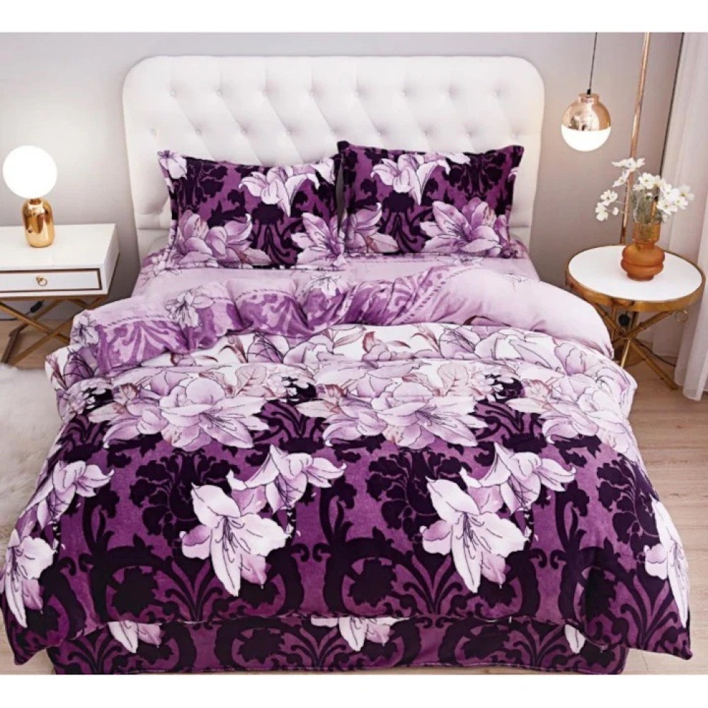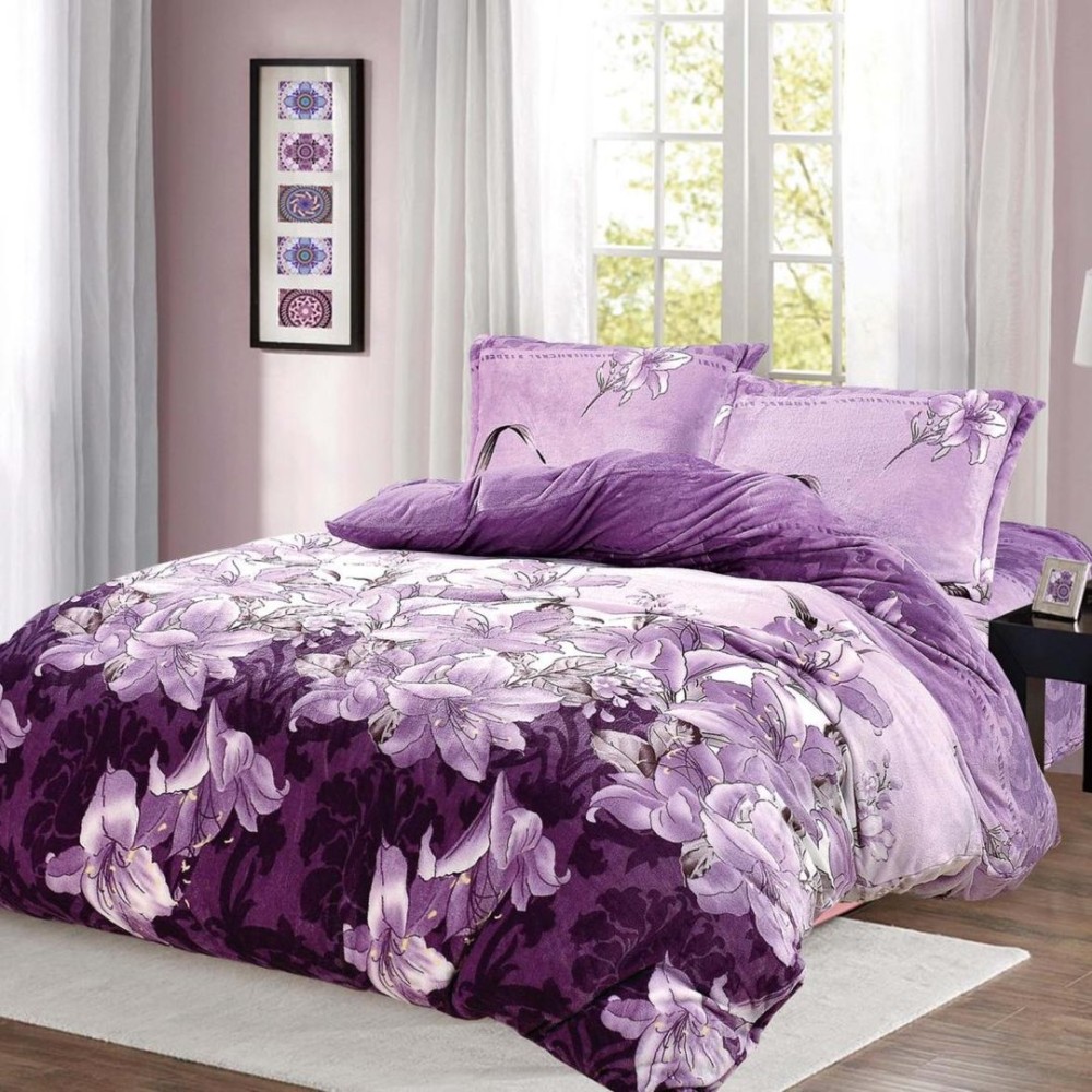 Lenjerie pentru Pat Dublu, Cocolino Premium, 4 Piese – Plușată, Groasă, și Călduroasă, Ideală pentru Iarnă – Confort Maxim, Antișifonare, Mov, crini, CumparaMisim, cod produs: YAF227