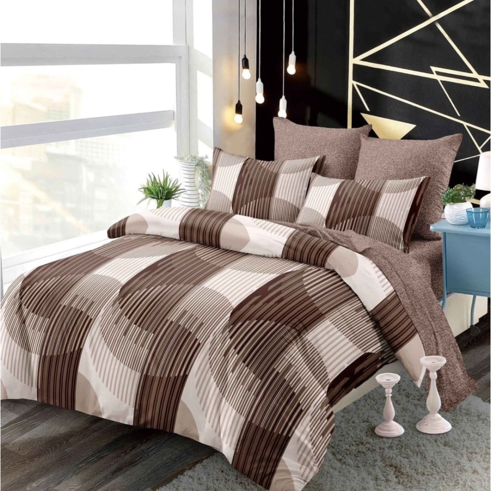 Lenjerie pat dublu, FINET, cu elastic, 6 piese, Maro, cercuri, Primavara Casa, cod produs: CFE352