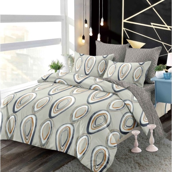 Lenjerie pat dublu, FINET, cu elastic, 6 piese, Gri, abstract, Primavara Casa, cod produs: CFE353